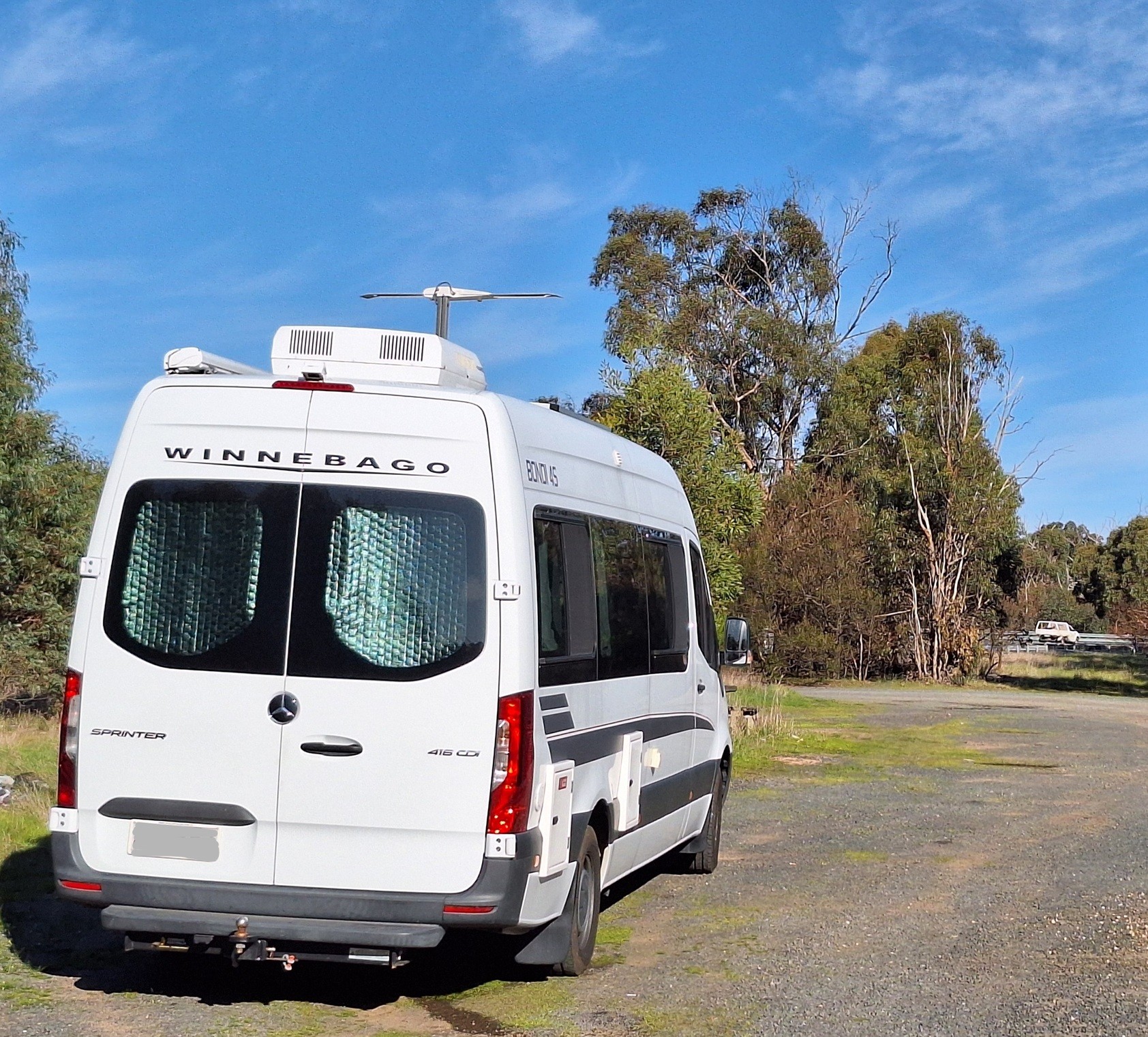 Mercedes Sprinter 47700 kms GVM 3880 Reg Aug 2026. Rev camera, towbar, 4 seatbelts. Solar panel, cab & house aircon. 3 burner gas stove, rangehood, microwave, water filter,12V 85L fridge incl freezer. Gas & electric HWS, TV/DVD and Smart TV. Captains chairs, front dinette. 2 single beds or convert to queen bed. Shower, cassette toilet. Quality black sheepskin seat covers, dashboard cover, sunscreens front and rear, additional towel & hanging rails, fly screens on windows and covering sliding door opening. Awning, gas bayonet for outside barbecue, non-smokers, no pets. Some bedding, crockery, cutlery included. Car licence to drive. Phone Colin 0417 563 310.