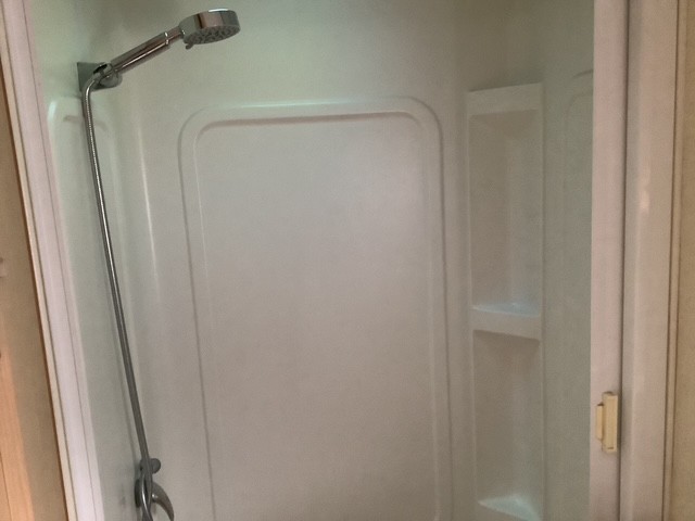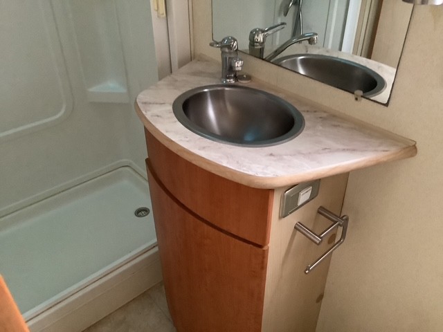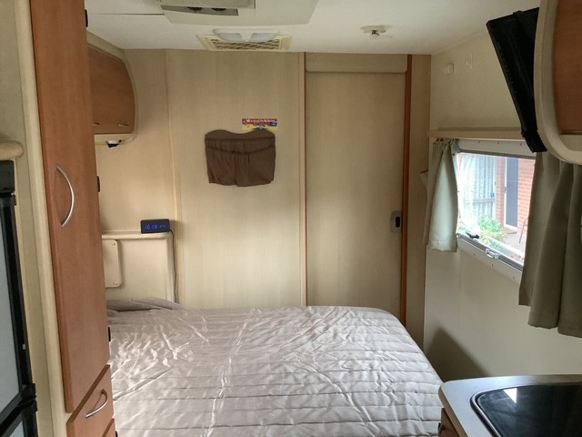 Full ensuite (separate shower, basin & Thetford cassette toilet across rear of motorhome)