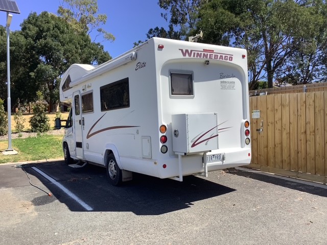 Motorhome is set up for off-grid free camping.