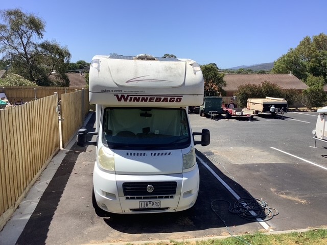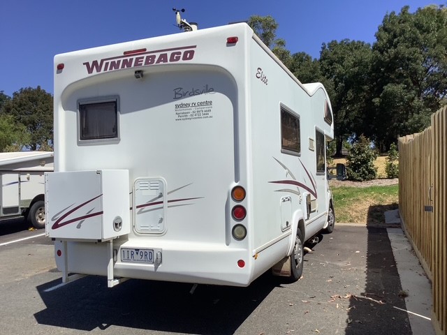 2 Kw Honda generator (on slideout in locked rear storage box. Connected to motorhome mains input. Can run air conditioning in hot weather or used to recharge house batteries)