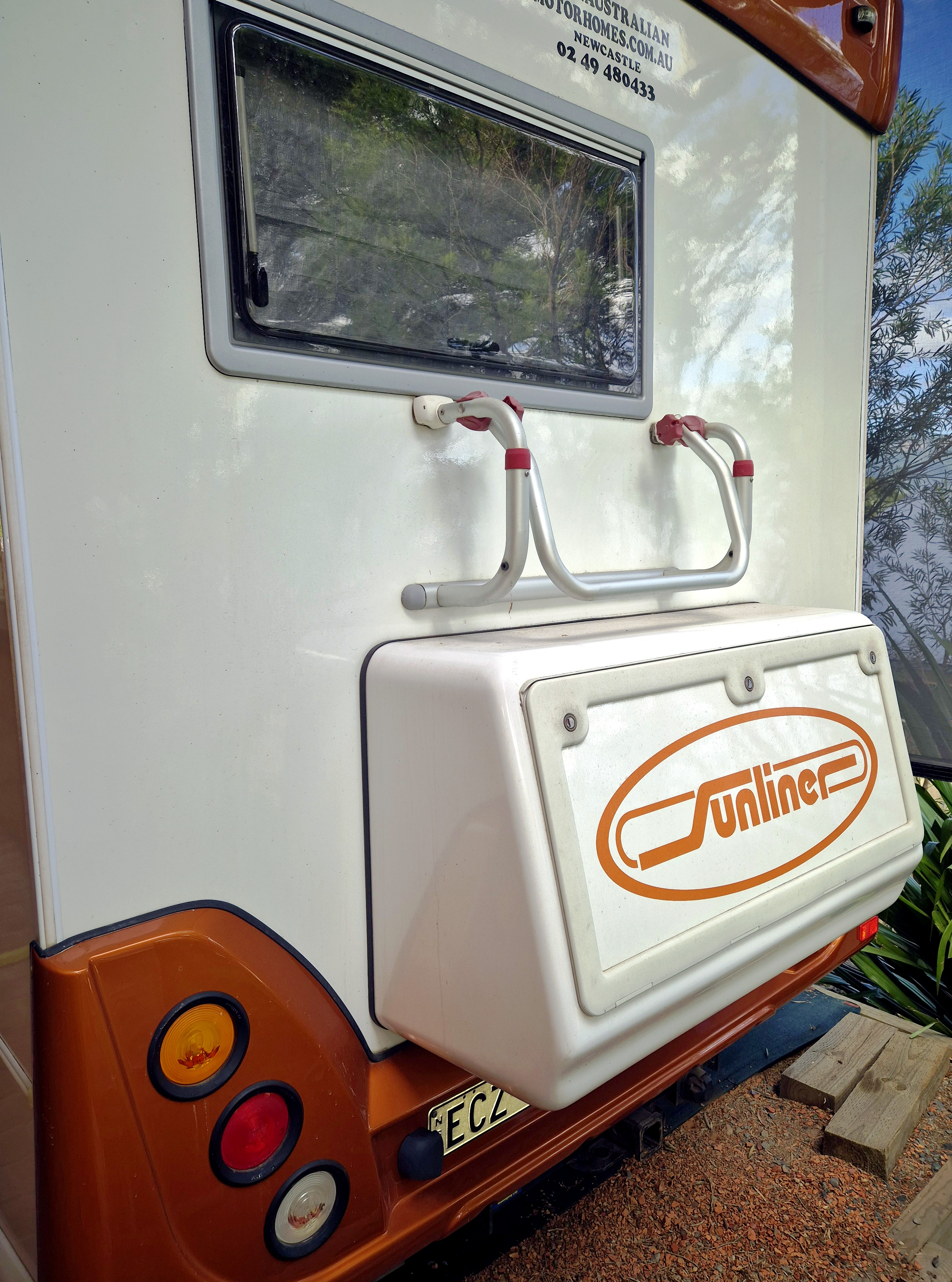 With rear boot, bike rack, outside shower, extra water tanks