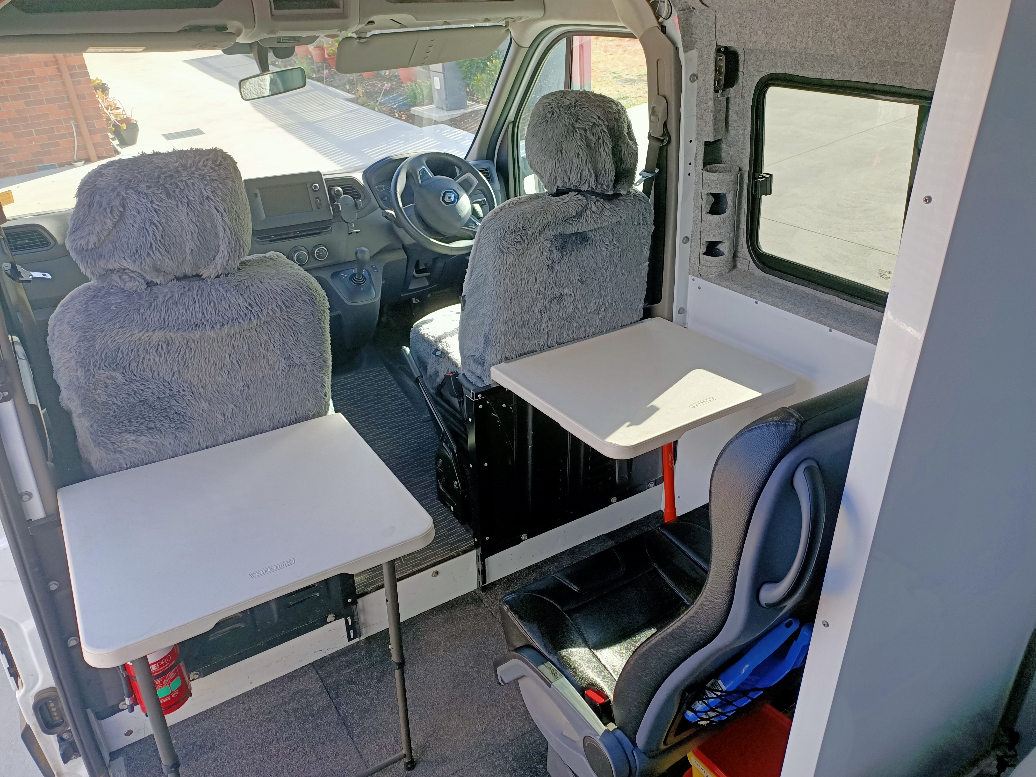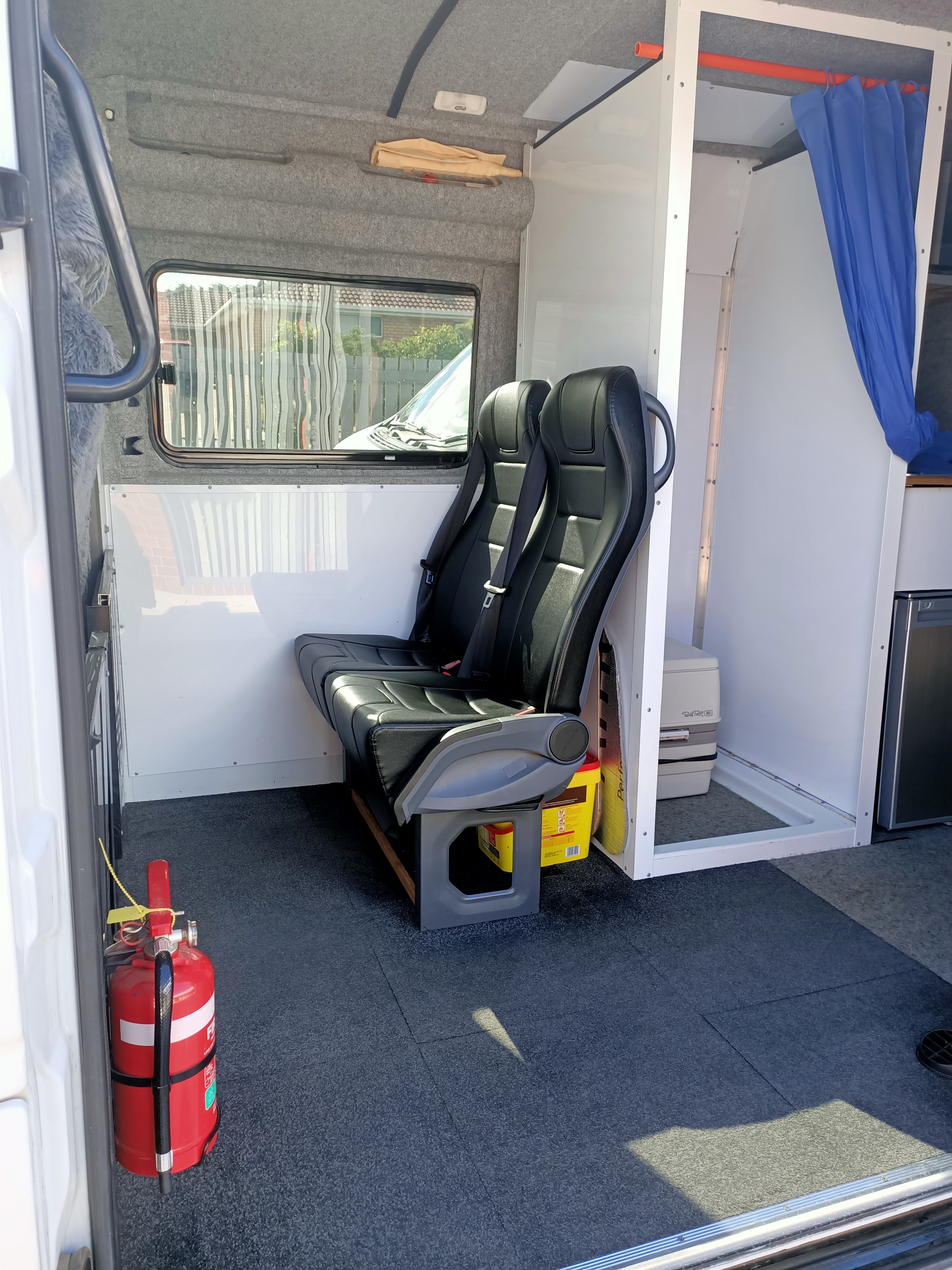 There are a fresh water and grey water 50ltr tanks. The kitchenette sink and shower bay are plumbed to the grey water tank. A rechargeable shower kit and solar water bags enable sustainable showering. Also included are a portaloo, tarpaulin and guy ropes.