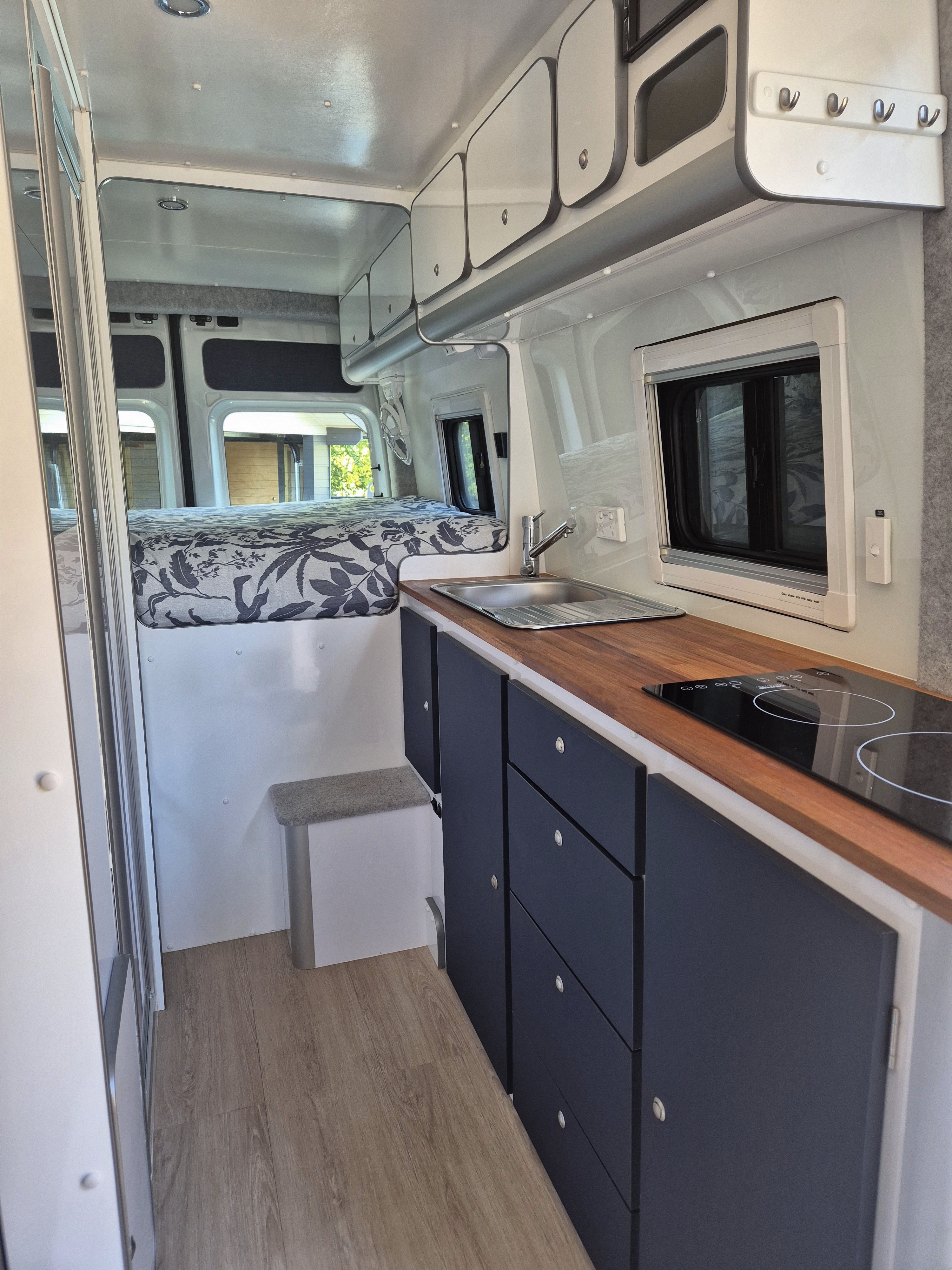 Crafter 4 motion, Toyo A/T tyres 95%, Upgrade suspension Sumo, 95ltr water shower/sink, 40ltr drinking (separate system), Diesel hot water/heating, Victron 3000 invertor, 400 watt solar + solar blanket input, 300 amp lithium, separate alternator + solar charging, Bushman 130 compressor fridge, inbuilt sound system, Maxxfan, Full cubicle shower/toilet, Fully insulated for all conditions, Induction cooking (no gas) , new cover, Hobie Lynx kayak + loading system (optional).