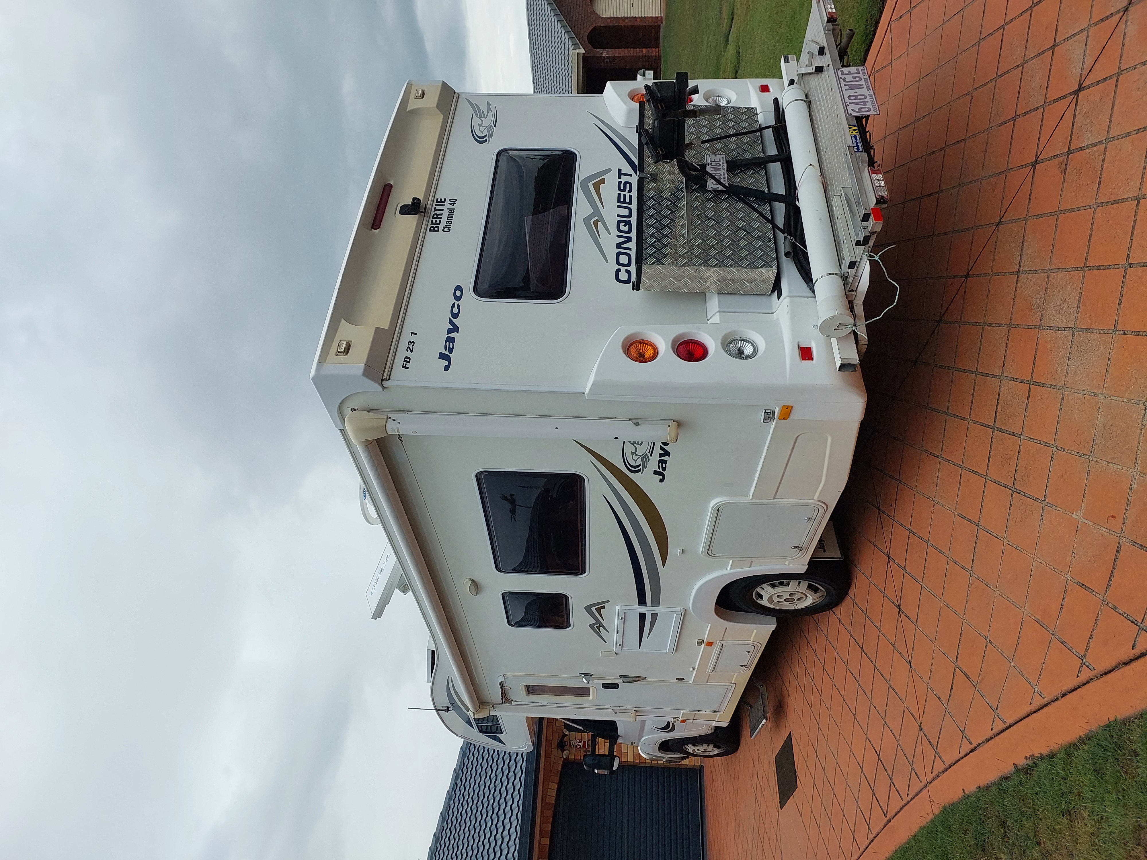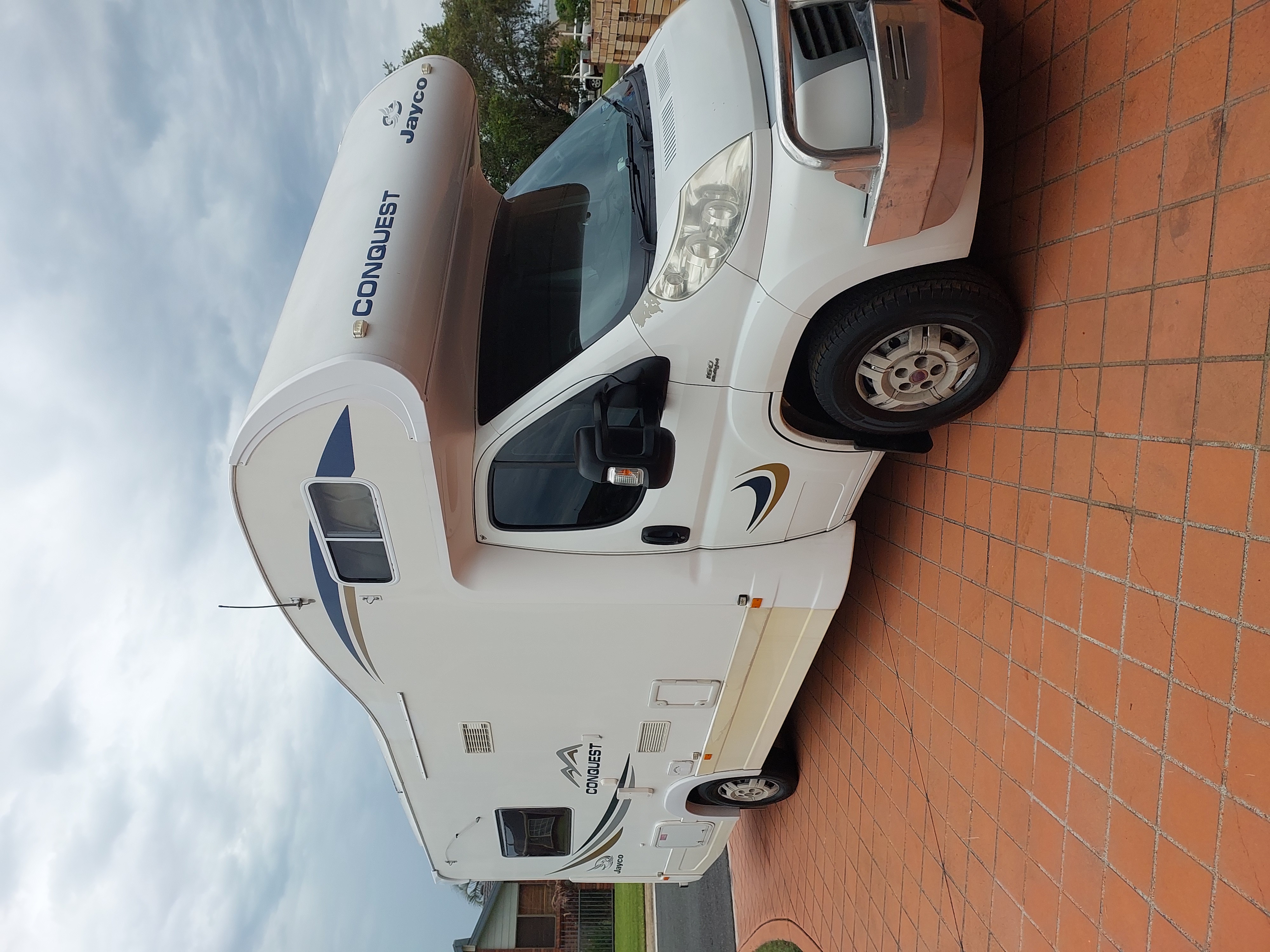 2009 Model Fiat Ducato series 11, 160 Multijet turbo, 3 Litre diesel, 6 speed auto/manual, 120,788 klms only, Cruise control, Power steering, Central locking, High roof Jayco Conquest FD23 1 Motorhome. Regularly serviced by the Fiat Dealer, with full record of all work done, including extras purchased, This van has the Club lounge set up, which can be used as two single beds or a large oversize King size bed, Registered to carry & sleep four adults, Club lounge setup has x2 seat belts in the center of the lounge, Further sleeping is available in the large bed also above cab, One 200 watt and two 90 watt solar panels, Two 100amp heavy duty batteries, which makes you completely independent of Caravan Parks if so desired. Relay to Ducato battery to charge when house batteries fully charged, HD TV, Pioneer CD Radio, Saturn omnidirectional TV antenna, SatKing ProMax Automatic Sat System (set up for Foxtel and Vast TV), UHF Radio external ariel, Reversing camera, Invertors 600watt 12/240v(factory installed) plus 300watt and 150 watt, Air Command IBIS Rooftop Air conditioner reverse cycle air conditioning unit, Built in diesel heater, Large three way fridge, Small extendable clothes line above, Electric and gas stove complete with oven, Micro wave, Shower, toilet and hand basin (toilet and shower has high ceiling and motorised vent, so plenty of room inside), two gas bottles, Truma hot water system, 140L fresh water tank, 90L waste storage tank, Automatic Carefree Travel’r shade awning, External fold down table, Surround heavy duty Bull Bar, Fitted rear bumper bar, Rear storage box and storage cylinder, Two driving lights, Reece Hayman tow bar, Bike racks, Heavy duty front suspension and rear airbags and stronger shock absorbers making this motorhome level and safer to drive. This motorhome is in good condition with copious amounts of storage and cupboard space and we are sadly selling due to ill health, viewing will impress.