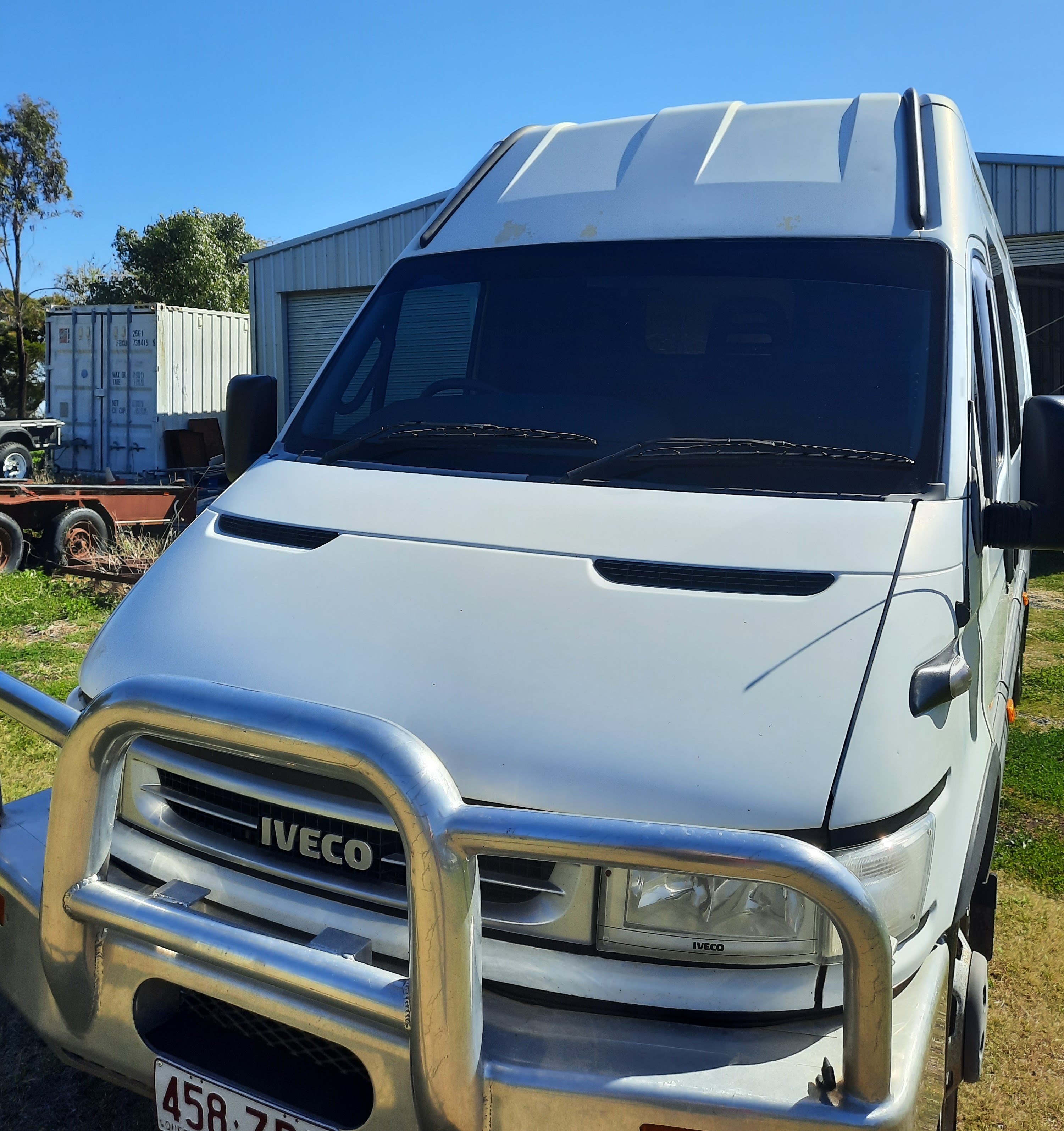 Iveco Daily Agile 50 C17 van LWB, high roof. Suitable for a motorhome conversion. 6 speed automated transmission. Genuine one owner with low km 142410km. Car license to drive. Accessories include Pioneer car sound, weather shields, headlight protectors, alloy bullbar, towbar with electric brakes.