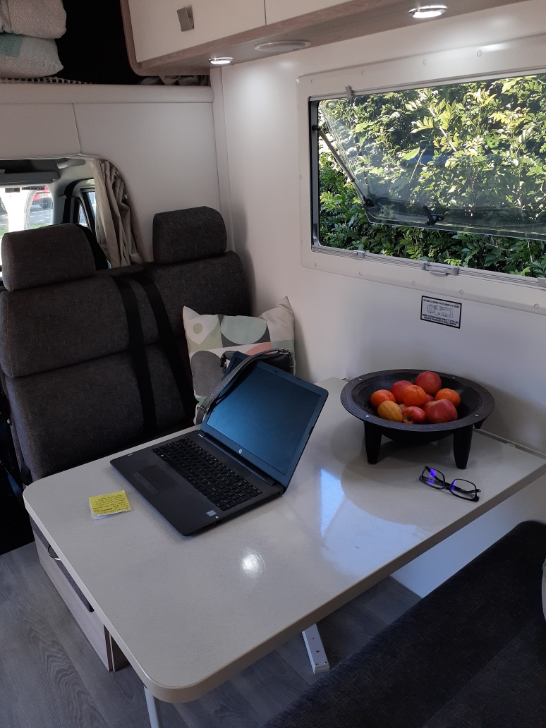 Outside comforts large awning power outlets tv outlet sound system speakers and a full length storage area that runs the whole width of the rear of the van accessible from both sides.