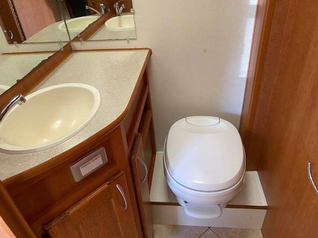 2 water tanks: 143L fresh, 110L drinking water. 113L grey water, 74 L black water (toilet)