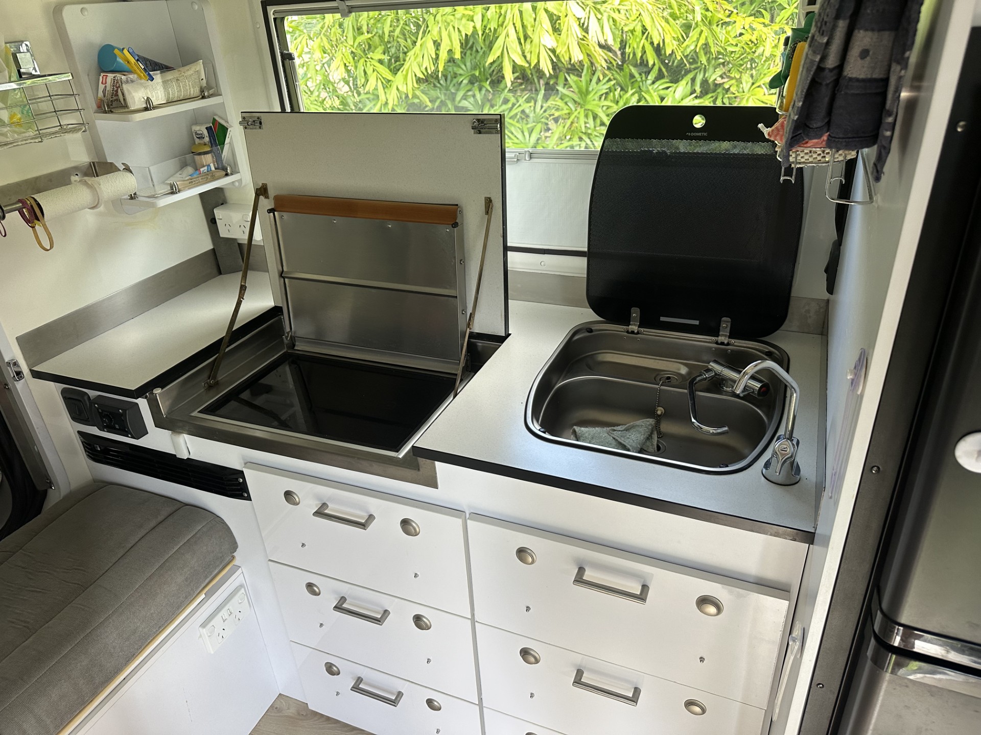 Awning side and end walls with anti flap kit. External fridge awning cover.