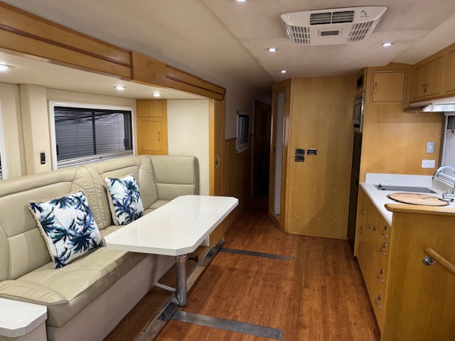 YEAR 2007 MAKE SWAGMAN MODEL Next Generation 36ft. 8.3 Cummings Diesel motor, 6 speed Allison auto, cruise control, self levelling jacks, full air brakes & exhaust brake, 5kva Onen Generator, 3kva Victron inverter. Maximum talk 1083nm @ 2200 revs. Michelin tyres. 5 seatbelts. Luxury fit out, internal headroom 2mts. Electric cooktop, microwave, large fridge/freezer, generous sized shower, toilet & vanity, 2 air conditioners, 2 TV's 36inch & 14inch, washing/dryer machine, 12 volt lighting. Electric & diesel hot water 40lts. Fresh water 390lts. Grey water 175lts. Black water 325lts. Solar panels with deep cycle battery bank. 2 slide outs one in dinning area the other in bedroom. Queen size bed. Loads of storage. Outside 7mt awning. All on Roadmaster Chassis.
